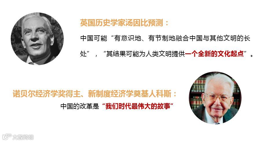 讲到这里,我们还要谈到一位大家都非常熟悉的学者,他是搞历史的,这个人很有前瞻性,他预测,中国可能有意识地、有节制地融合中国与其他文明的长处,其结果可能为人类文明提供一个全新的文化起点。