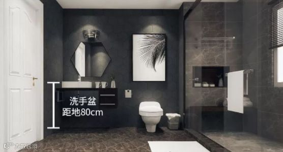 4、卫生间洗手盆离地80cm,洗手不累腰;面盆深12cm以上,水不会溅出来打湿衣服。