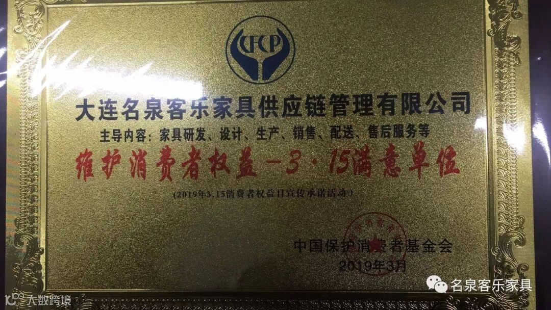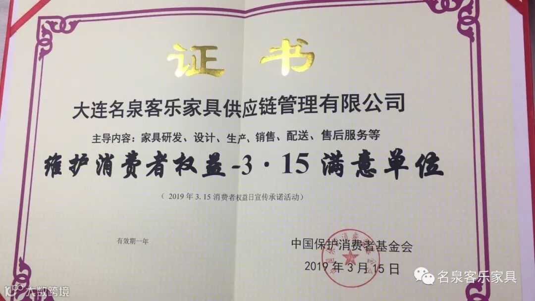 诚信经营是商家生存之本,我们名泉客乐家具以良好的口碑和严格的管理,受到了业内的一致好评,公司先后荣获中国保护消费者基金会2019年“重质守信3.15满意单位”、“维护消费者权益诚信单位”、“大国诚信品牌崛起消费者喜爱的诚信品牌”、“家居产业链行业中国民族品牌”等荣誉称号。