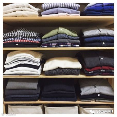 以隔板或抽屉收纳为主的衣柜,将衣服平叠收纳是最熟悉的方式,能够收纳多种类型的物品,也是我们需要无限循环收纳衣物的根本原因,因为衣物的层数重叠太多的时候,想要拿取底层的衣物会非常困难,而且会很容易将上层衣物也打散。