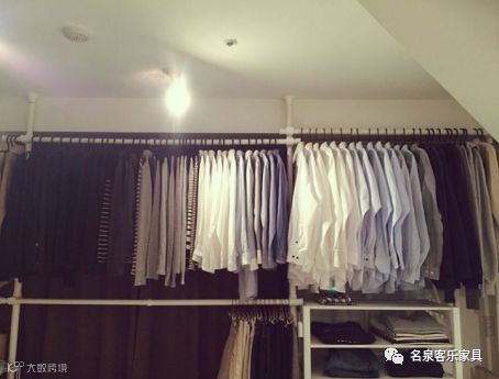 最常用的收纳方式,这样的收纳拿取衣物非常方便,一目了然,迅速就能找到自己想要的衣物,但不可挂的太过紧密,否则衣物彼此挤压很容易产生褶皱,也会造成拿取不便。我的一个小方法是将经常搭配穿的衣服放在一起,这样会省不少找衣服的时间,或者将第二天要穿的衣服挂在最外边。