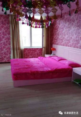 这喜庆的感觉,一看就是婚房,但这墙,你不说我还以为看到的是商场的照片墙呢。