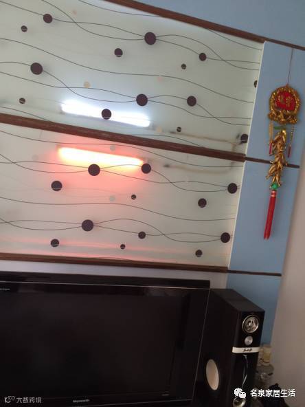 这个电视背景墙如果勉强还算是比较艺术的线条的话,那这个不一的灯光是什么鬼?那两串小金鱼又是什么鬼?