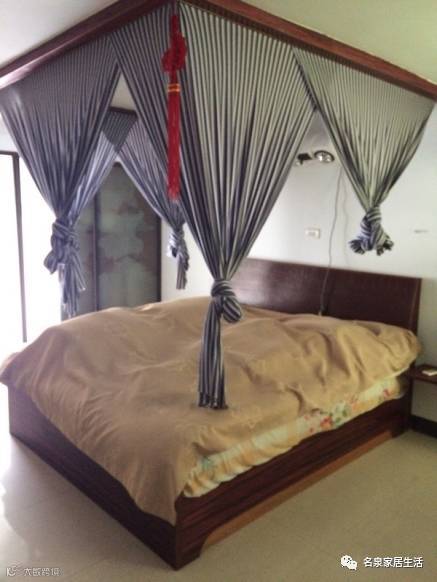 我看见这个家装的时候是很震惊的,这个厚重的床幔和大红色的中国结?但我发现,还有更令人吃惊的!
