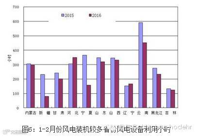 分类型看,1-2月份,全国水电设备平均利用小时445小时,同比增长72小时;水电装机容量超过1000万千瓦的7个省份中,只有青海同比下降50小时,其余省份都有所增加,其中湖南增长289小时,贵州增长121小时,广西增长100小时。全国火电设备平均利用小时656小时,同比下降83小时,降幅比2015年同期扩大31小时;其中北京、河北、江苏、安徽利用小时数接近或超过800小时;与上年同期相比,共有25个省份火电利用小时同比下降,其中,四川、西藏、青海及福建下降超过300小时。全国核电设备平均利用小时1025小时,同比下降68小时。全国风电设备平均利用小时263小时,同比下降39小时。