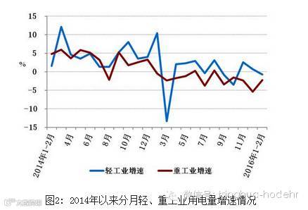 2工业用电量增长持续不振,轻、重工业用电量均负增长