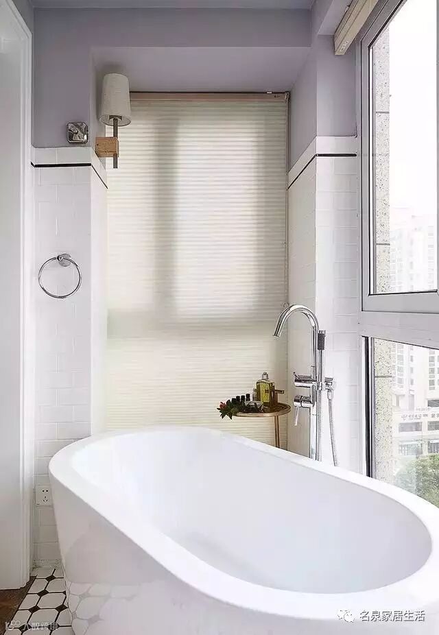 浴缸就在窗户旁,记得拉窗帘