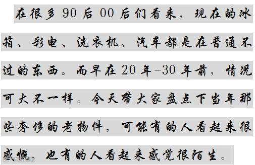 导读:在很多90后00后们看来,现在的冰箱、彩电、洗衣机、汽车都是在普通不过的东西了。