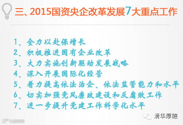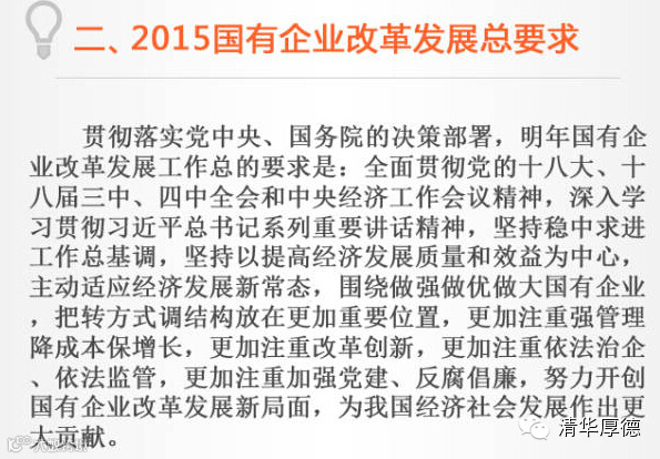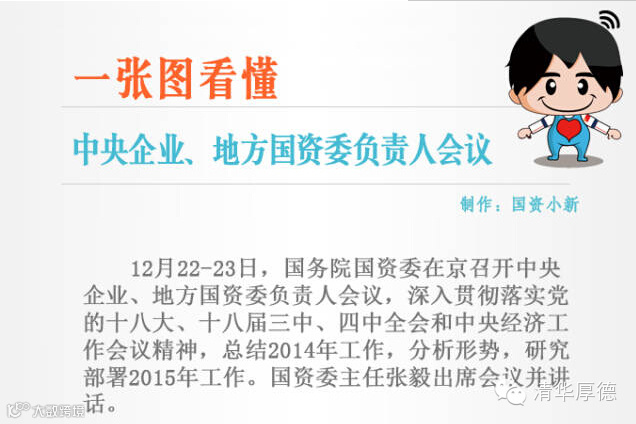 厚德能源观察12月22日,国务院国资委在京召开中央企业、地方国资委负责人会议。国资改革发展,和国计民生息息相关。这次年终岁尾召开的工作会议信息量很大、含金量很高、干货很多,很接地气,获得了媒体的高度关注:“国资委定调2015国企改革路线”、“从国资委工作会看国企改革发展五大信号”、“国资改革三重奏即将上演”、“国资委召集全体央企开会,表态:要带头自我革命”……