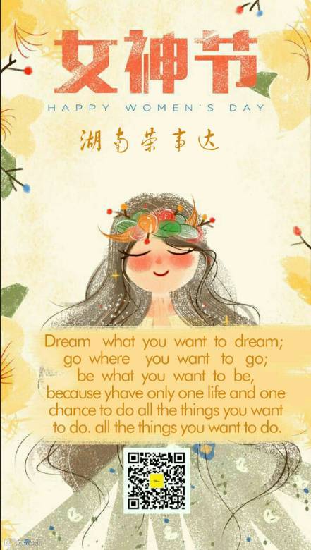 3.8国际妇女节是全世界妇女的节日。这个日子是联合国承认的,同时也被很多国家确定为法定假日。来自五湖四海的妇女们,尽管被不同的国界、种族、语言、文化、经济和政治所区分,但在这一天能够同时庆祝属于自己的节日。让人们再回首那九十年前的为得到平等、公正、和平以及发展所做出的斗争。