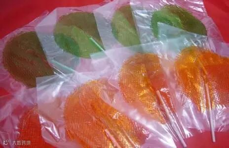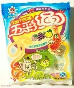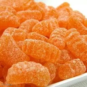 橘子软糖,一嘴橘黄色的色素.....真有橘子味,估计是添加剂 .....