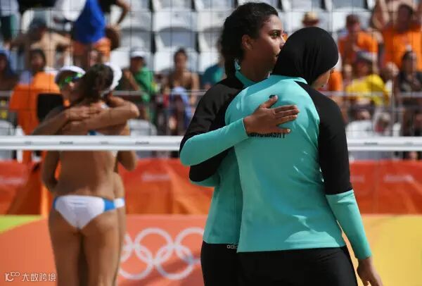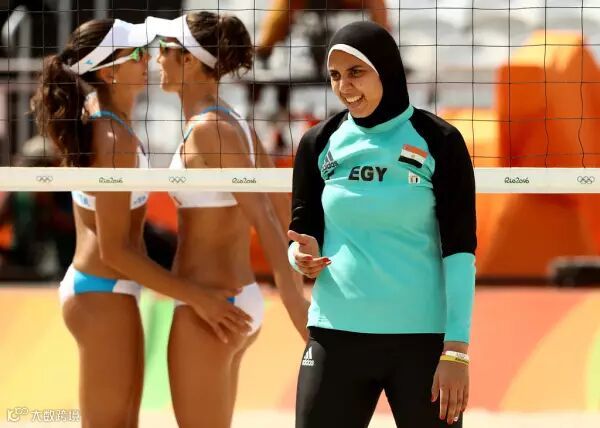 赛后,埃及姑娘Doaa Elghobashy说,“我已经戴了10年头巾了,它不会影响我做我喜欢做的事,像是打沙滩排球。”