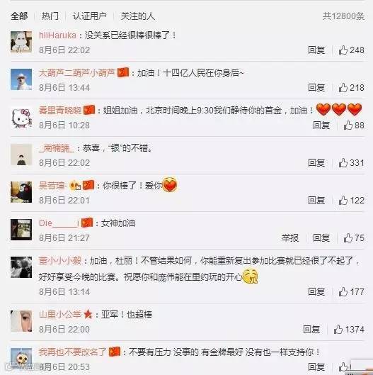 相反,大家都在说:杜丽好样的,孙杨挺住,大家支持你们,中国不缺这一块金牌!