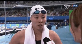 记者跟傅园慧说她获得100米仰泳第三名,傅园慧:“啊?真的吗?”