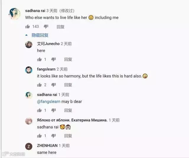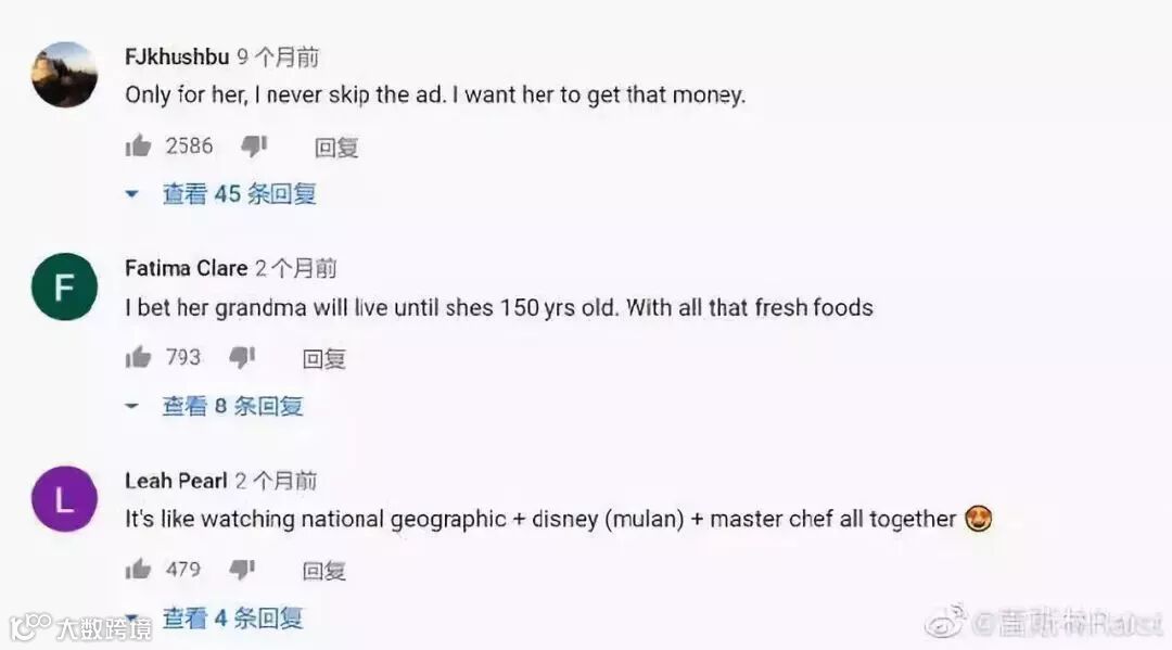虽然一直到五个月前,才有中国网友把这段翻译成了中文,但在此之前,那些看不懂中文的外国粉丝,依然不吝于在评论里表达他们对李子柒的喜爱。视频底下老外,就是一边看不懂一边看,一边求翻译一边看: