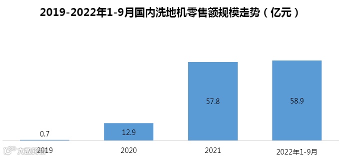 尽管洗地机使用的差评以及关于智商税的言论频出,但是在消费数据上,洗地机依旧交出了十分漂亮的成绩单,增长速度令人瞩目。得益于产品概念的传播以及频繁更新迭代的产品,2021年洗地机的增长进入爆发阶段,据奥维云网数据,2021年全年洗地机的销售额为57.8亿元,较2020年同比增长348%。进入2022年9月,洗地机全渠道累计销额已达到58.9亿元,超越2021年全年销售额,同比增加76.4%,在大促的热度尚未来临就已经持平去年销售水平的状况下,年底国庆假期、双十一、双十二的大促将助力洗地机全渠道渠道销售突破百亿大关。