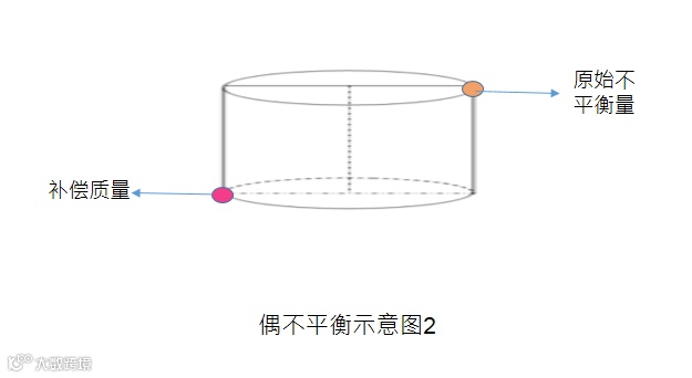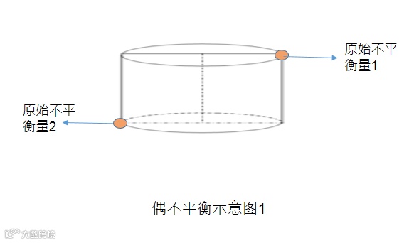 单面平衡,又称静平衡,在转子的一个校正面上进行平衡,以保证转子在静态时是在许用不平衡量的规定范围内。如下图示意