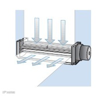 贯流式散热风扇能造成大规模的风流,一般用以冷却设备的宽阔表面,其风扇的进气和排气均垂直于轴线。