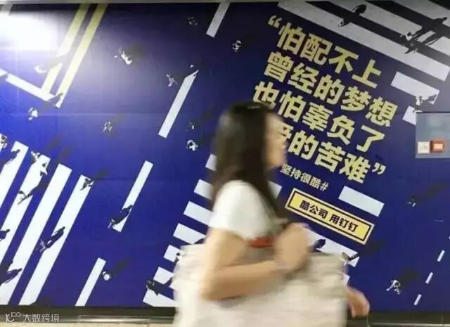 马云阿里巴巴最近在地铁站投放了一组主题为“创业很苦,坚持很酷”,"28岁,头发白了一半”的地铁广告,将26个创业故事做成了一篇篇广告语,打动无数人。