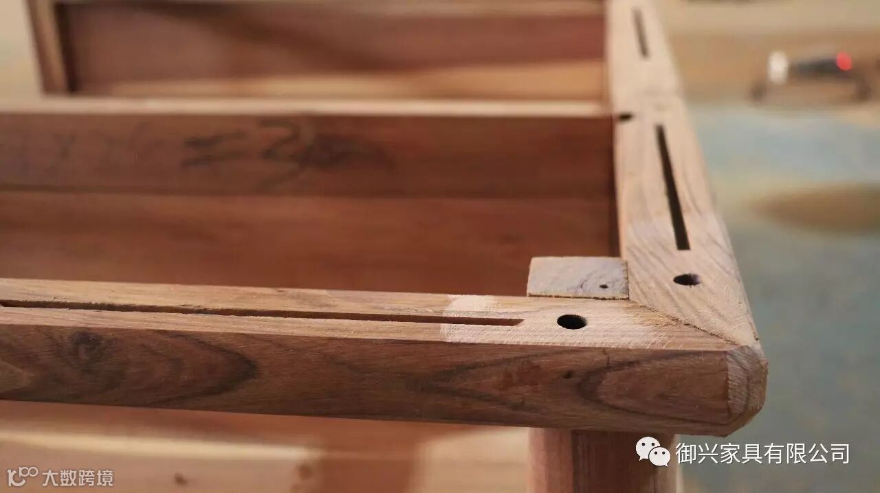 总之要做到各零部件连接紧凑、整体协调之后,再分拆下来做进一步打磨。打磨后的家具表面要求圆浑和顺、无水浪、手感无高低,目测无异样,所谓巧夺天工、精工细作,都在这里发挥。