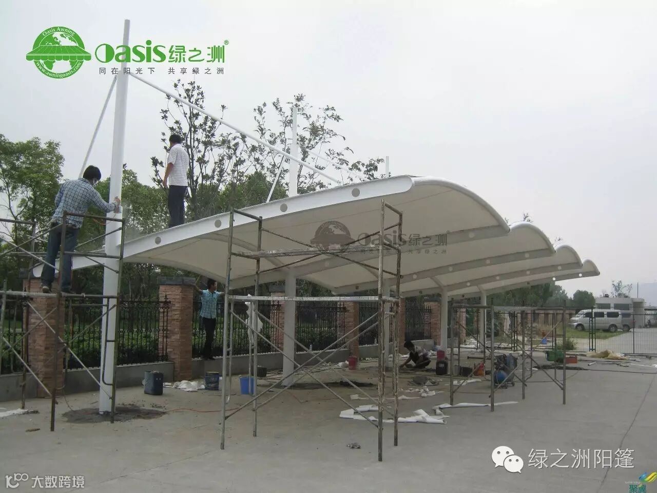 广州绿之洲膜结构车棚是由多种高强薄膜材料及加强构件(钢架、钢柱或钢索)通过一定方式使其内部产生一定的预张应力以形成某种空间形状,作为覆盖结构,并能承受一定的外荷载作用的一种空间结构形式。我公司多年来一直关注膜结构的发展,随着后期的不断研发,目前,我公司的膜结构车棚已被广泛应用。
