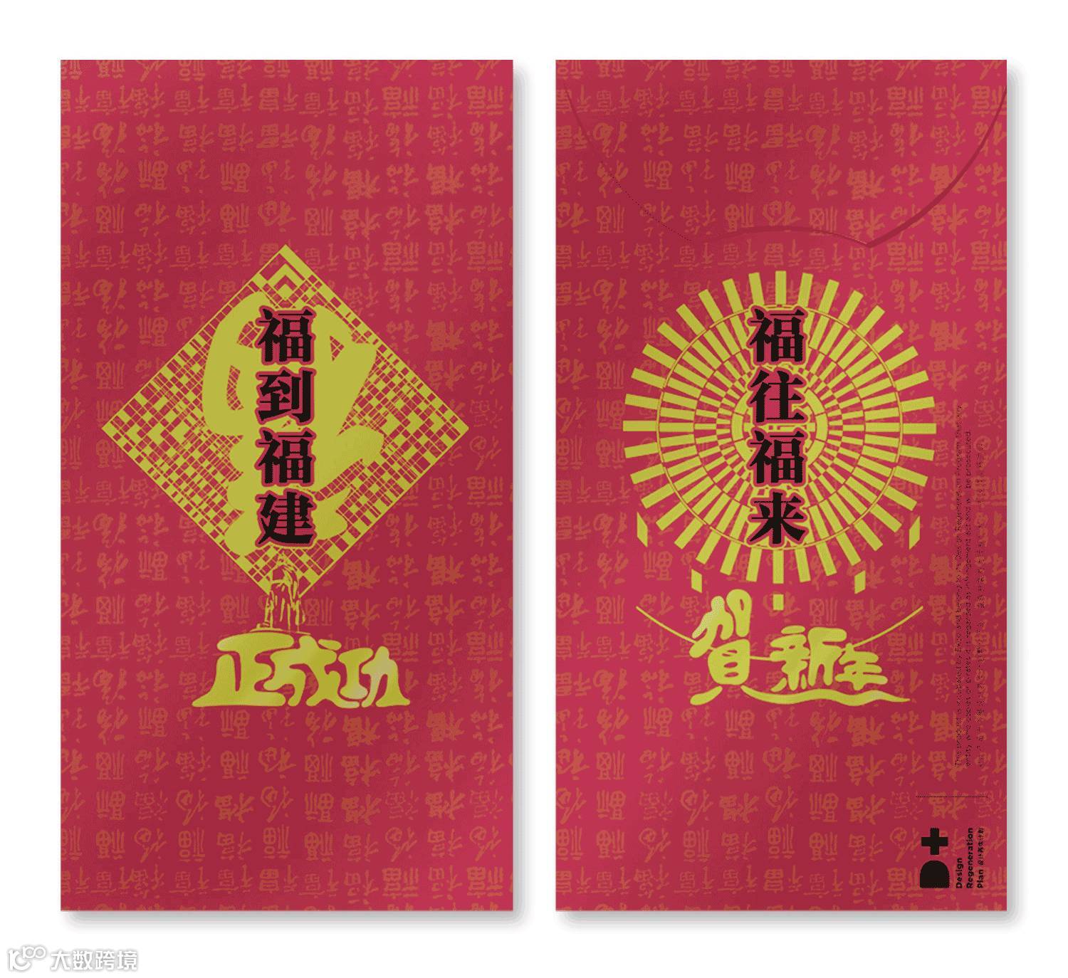 红包的正背面各有一句吉祥话语,连着一起读正是一副对联:“福到福建正成功”;“福往福来贺新年”。将福建地名、福建的历史人物等融入其中,代表了福建作为唯一一个以福字命名的省份,带给人们的美好祝福和向往!设计的元素融合了福字、福建土楼、厦门郑成功雕塑、武夷山标志性景点玉女峰、大王峰、竹排漂流,福建的人文风光一览无遗。