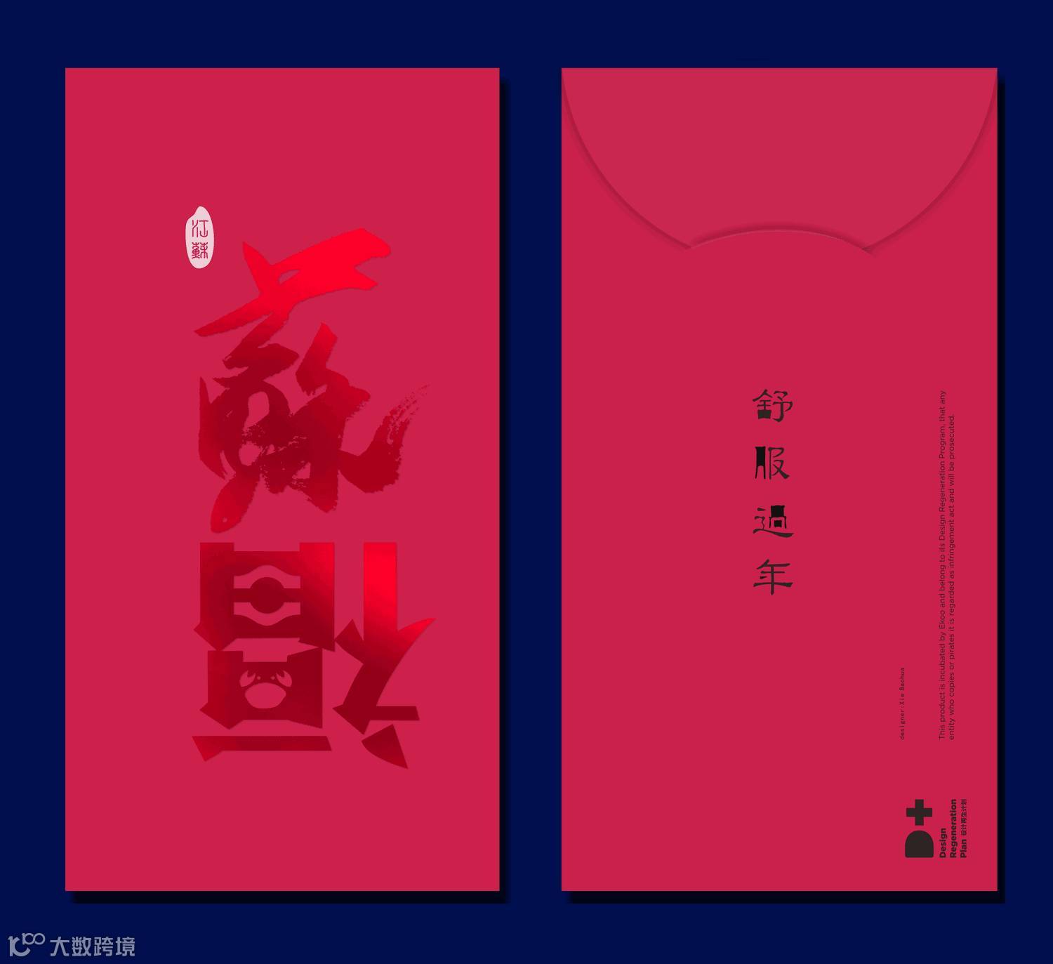 红包创意来源“舒服”的谐音“苏福”,这是对生活的祝许,也寓意着江苏人民的幸福生活。"苏"用中国传统书法来传递江苏的文化底蕴,同时融入了“鱼”的造型;“福”的负形空间融入了亭台楼阁、小桥流水和具有江南特色的大闸蟹。