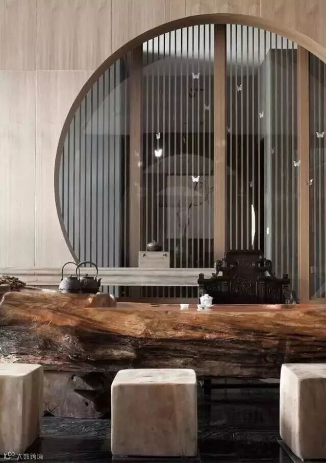 圆形窗洞通过框住窗外景色将室内空间延伸