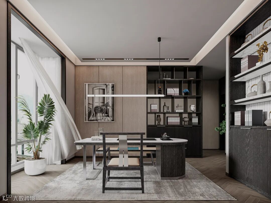 茶室虽是取得大空间的一隅,但是在设计上却毫不含糊。将功能升级呈现,黑白色调的搭配自带摩登高级感,茶室中各个区域划分鲜明,材质碰撞,展示个性的同时彰显出年轻一代的品质追求,再搭配上大落地的自然光线交汇,令空间悠闲格调进行发散。