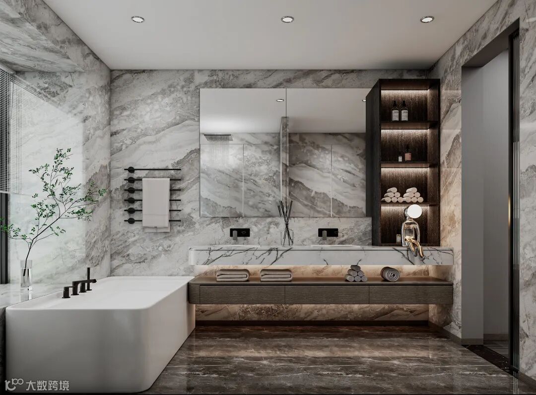 卫浴系统贴合业主实际需求进行展示,大理石元素的墙面自带一种优雅的气场,在提亮视觉的同时,也让高级感在家中每个角落流露,圣蒂斯堡全案设计师用实力诉说着时尚与品质的共存。