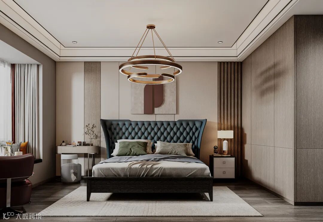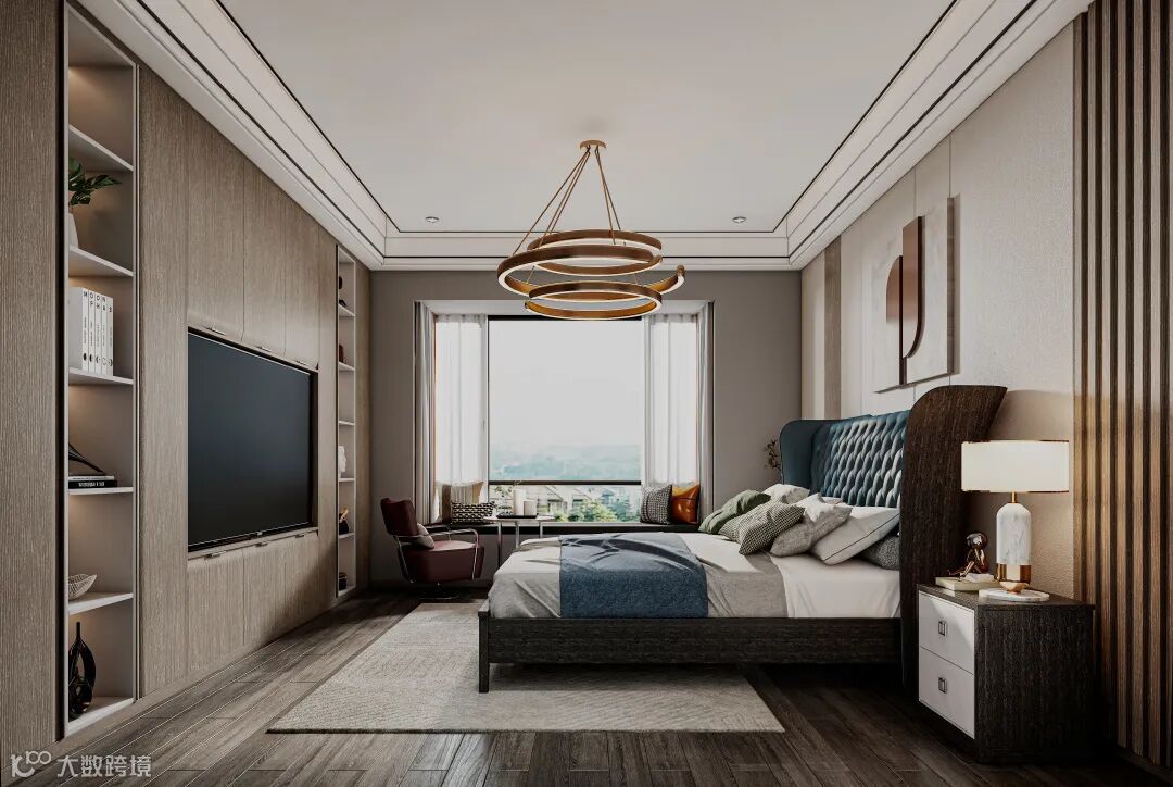 一个现代卧室,除了需要高质量的睡眠区域,同时还需要多功能系统满足生活所需。
