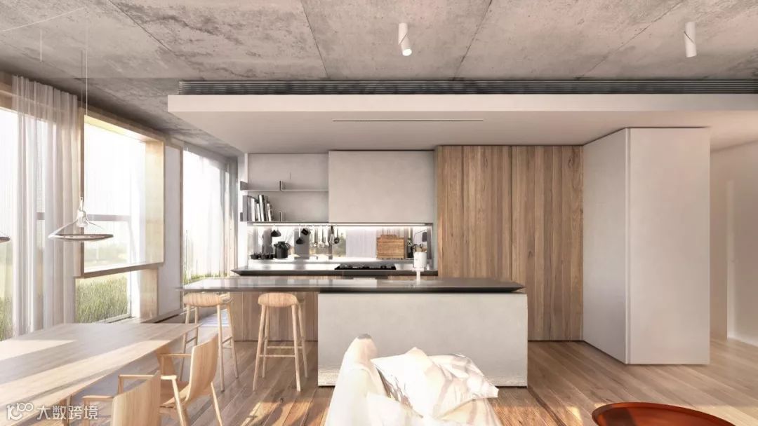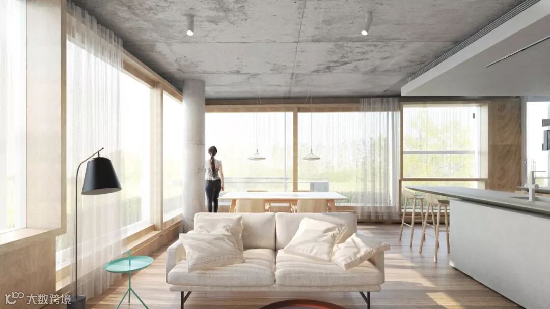 公寓的设计非常清新怡人,以混凝土和木材的搭配作为主轴,而且无论是一卧室公寓还是双卧室公寓,都有着非常良好的采光。