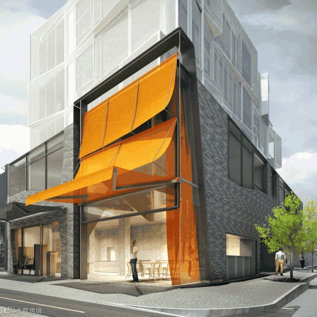 大楼起伏的立面整体是以「网状」为灵感,玻璃、石砖和材料的相互包围,共同组成了这个经典的立面结构 ▼