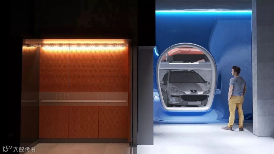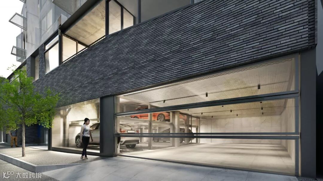 上下层式的停车机制需要有机械工艺支撑,在车库的内部还设计了一个大窗口,从外面就可以看到自己的爱车。