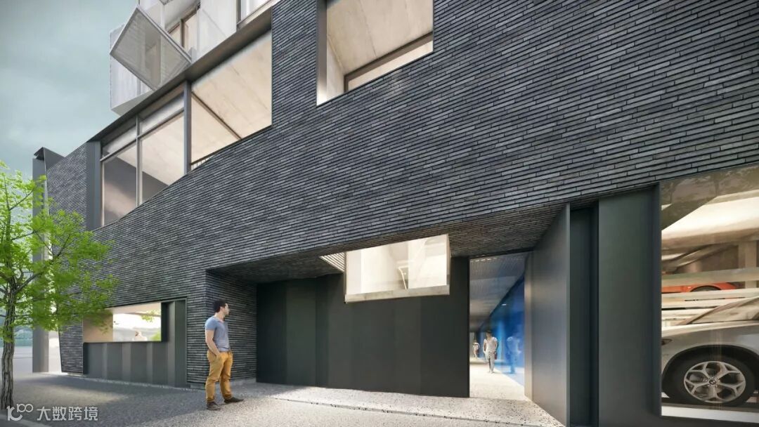 公寓的侧边外墙通过石砖砌成,这是一个相当大的车库,设计的目的就在于为住户提供特别的车库设施。