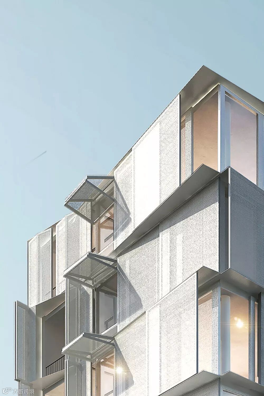 建筑立面上拥有定制的遮阳构架,这些构架可以开合,以此来控制光线和视野 ▼