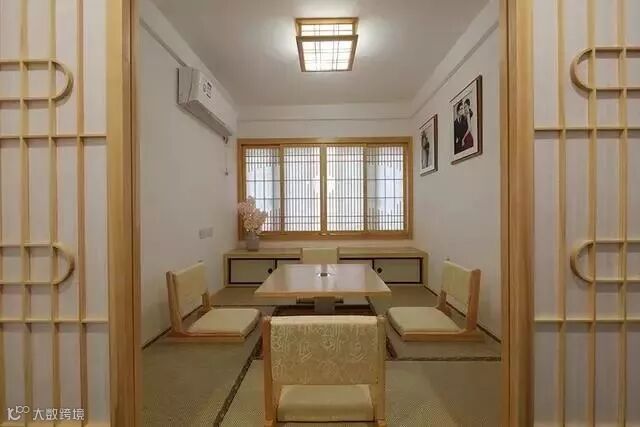 茶室的整体布置也是选用了日式和风,无论是吊灯、窗户还是塌塌米,整体风格一致,目光所及之处很舒服;