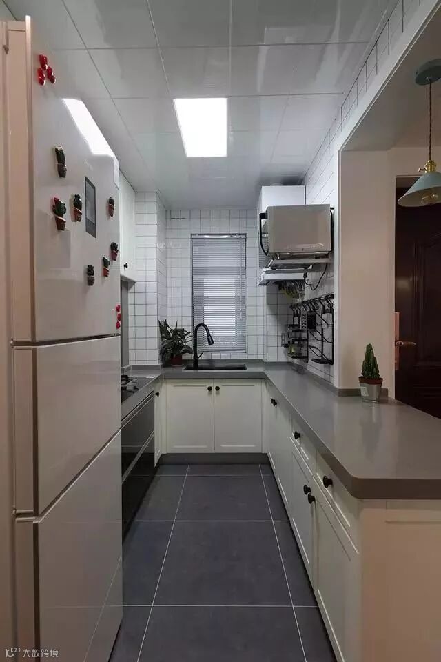 厨房的五金件选用了黑色的,配上白色的瓷砖,立马提升一个档次;