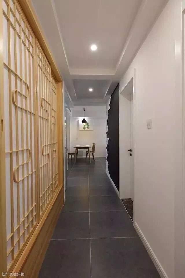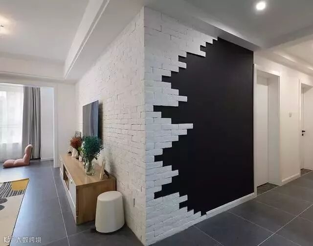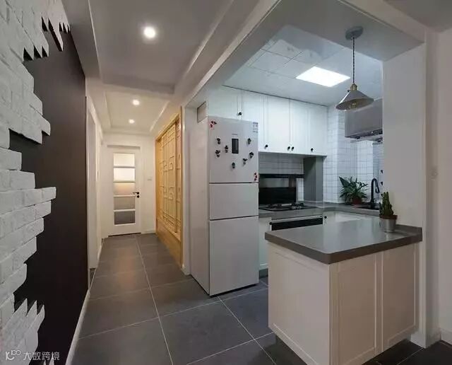 厨房对面的过道,延续了电视背景的文化砖,造型很有艺术范儿;