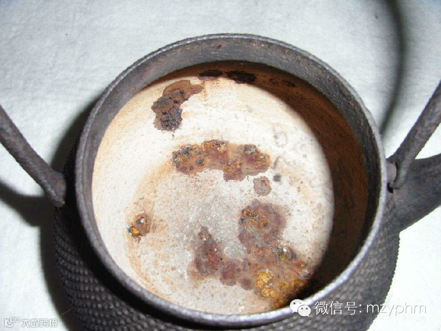 4、铁壶使用约5天后,内壁会出现猩红色斑点,10天左右会出现白色的水垢!