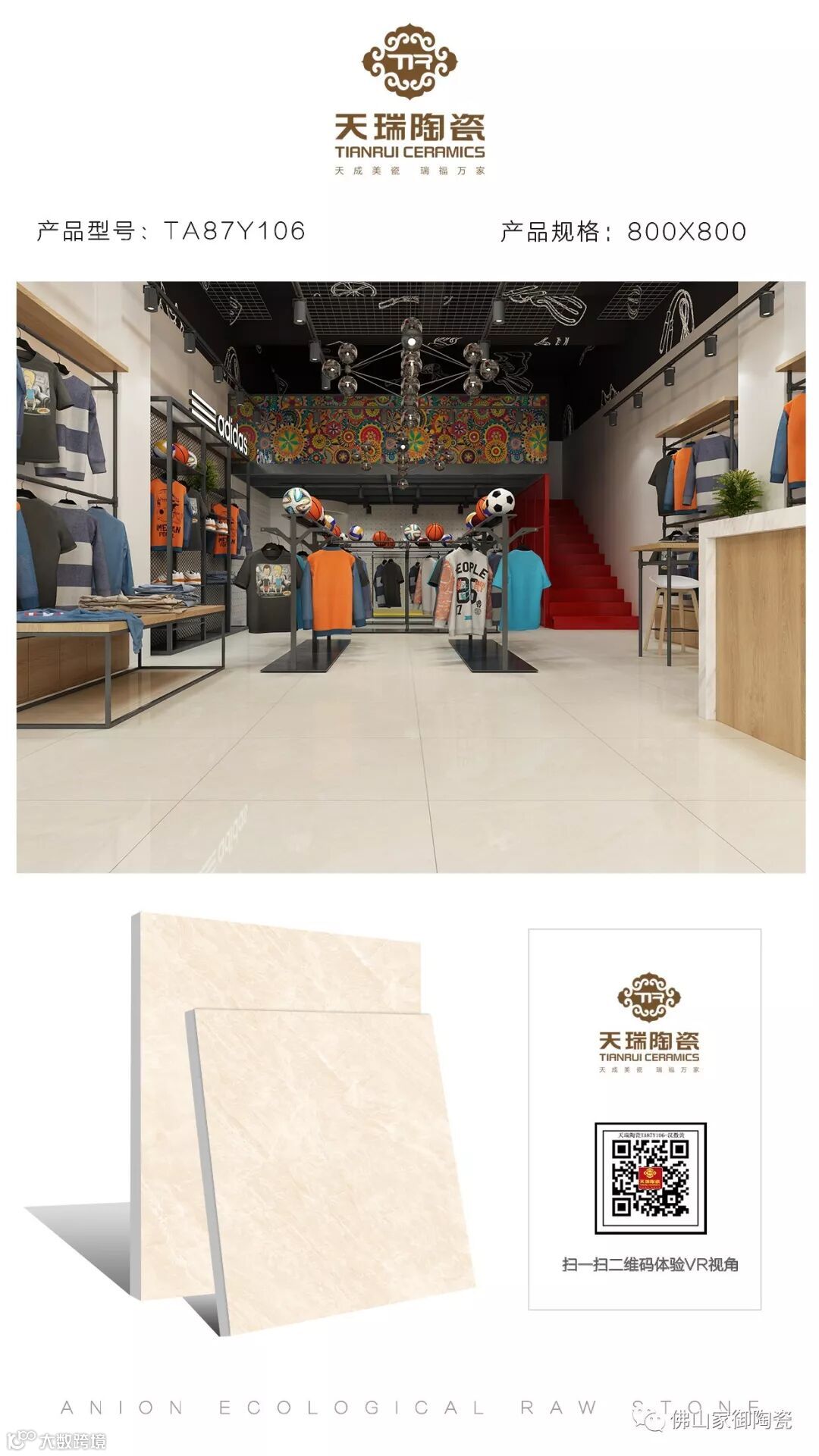 天瑞陶瓷主要生产销售300*600、400*800、600*600、800*800mm等规格产品,涵盖136瓷抛大理石材、通体生态负离子、生态原石、全瓷中板、金刚玉石、现代仿古、配套小地砖等多个规格、全系列产品共500多个花色产品,可以满足不同消费者的选购需求,为每一户家庭装修点缀出最为出众的美居。