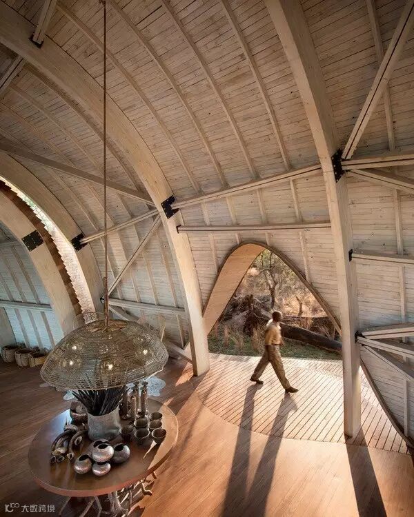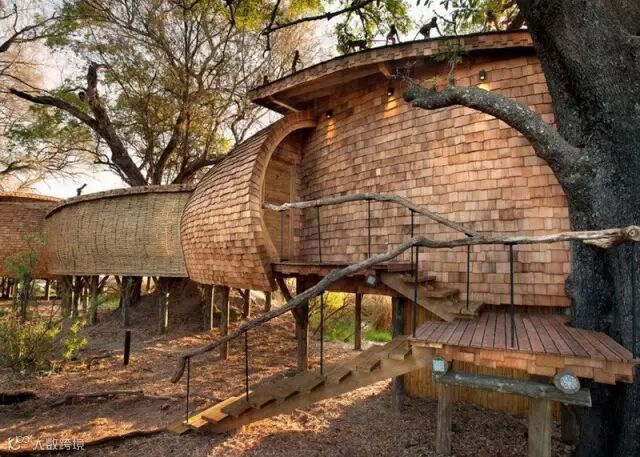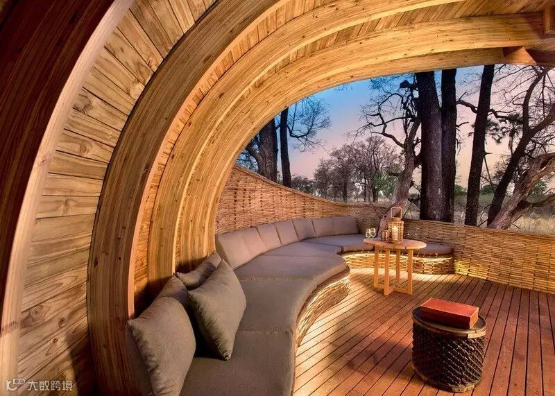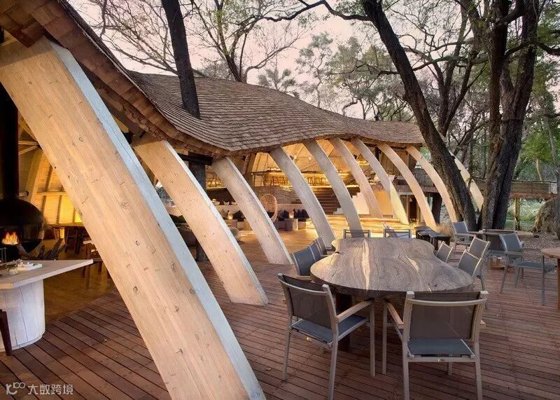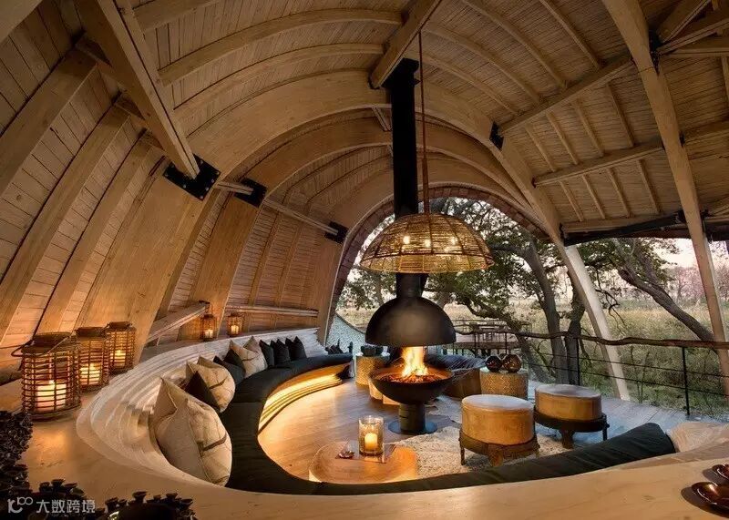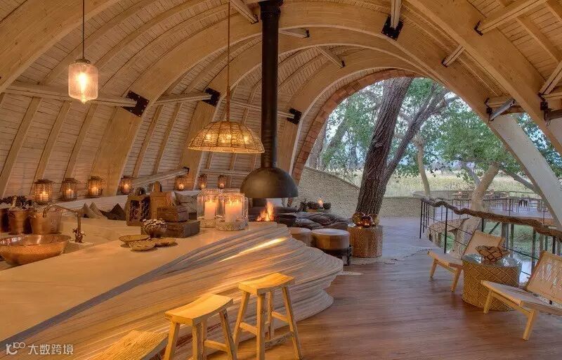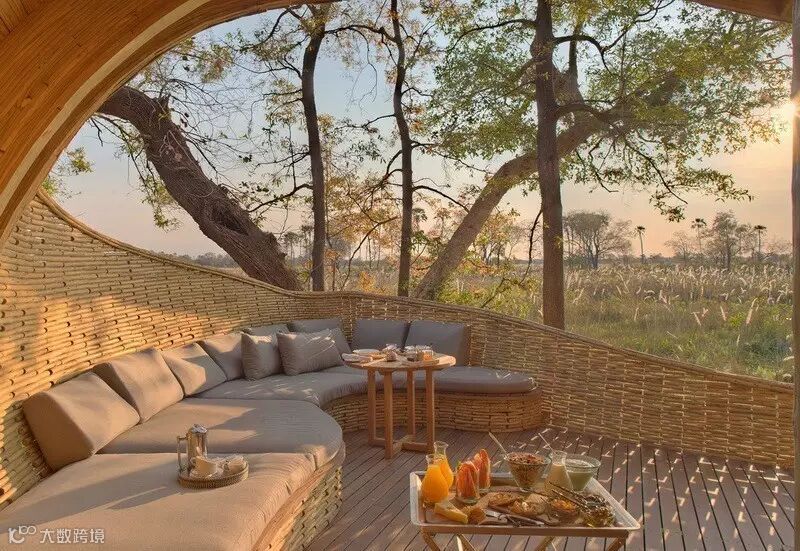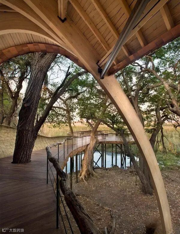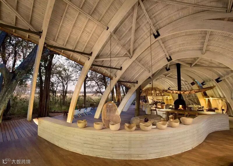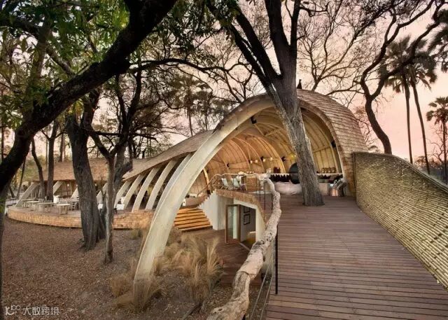 来自南非的设计团队Nicholas Plewman Architects与英国团队Michaelis Boyd克服了重重困难,利用环境周边的树木,终于完成了这座造型独特且拥有24个床位的酒店设计——Sandibe Okavango Safari Lodge。