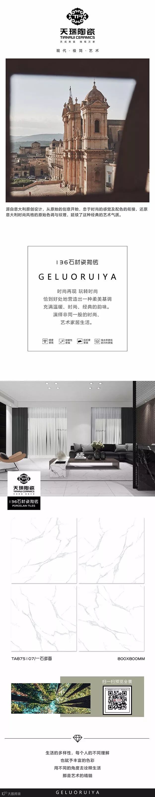 导读:天瑞陶瓷产品艺术周刊之136瓷抛通体大理石材