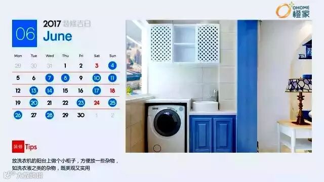 6月tips:放洗衣机的阳台上最放一个小柜子,放一个杂物柜,方便存放洗衣液等杂物,既美观又实用。