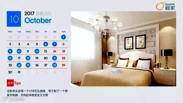 10月tips:主卧床头安装一个USB五孔插座,等于配了一个原装充电器,充电起来既安全又方便。