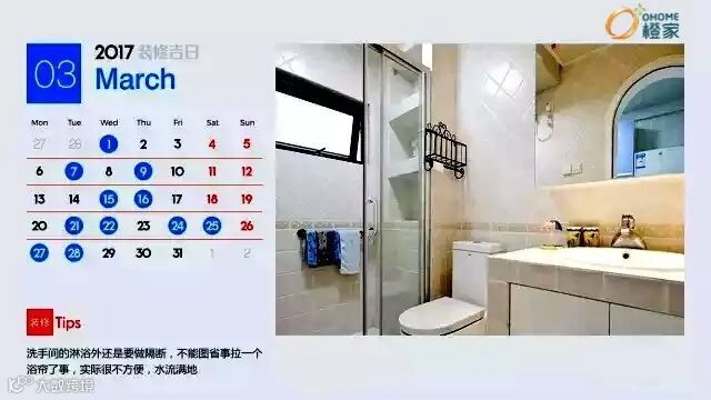 3月tips:洗手间的淋浴外还要做隔断,不要图省事拉一个浴帘了事,其实很不方便,水流满地。