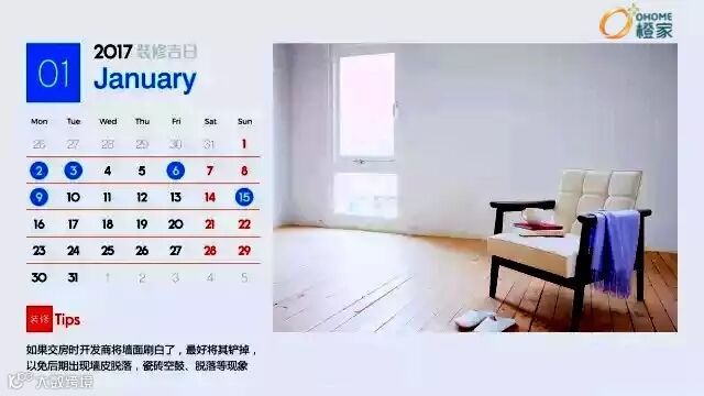 1月tips:如果交房时开发商把墙面刷白了,最好将其铲掉,以免后期出现墙皮脱落,瓷砖空鼓脱落等现象。