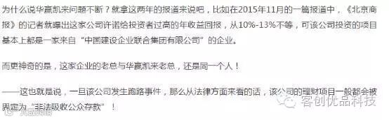 环球时报发文质疑:“巴铁”项目的背后其实是一个做网络金融P2P的理财公司“华赢凯来”在运作,该公司一直在吸纳投资人的存款,并承诺回以高额利息,但其资金链风险很高......