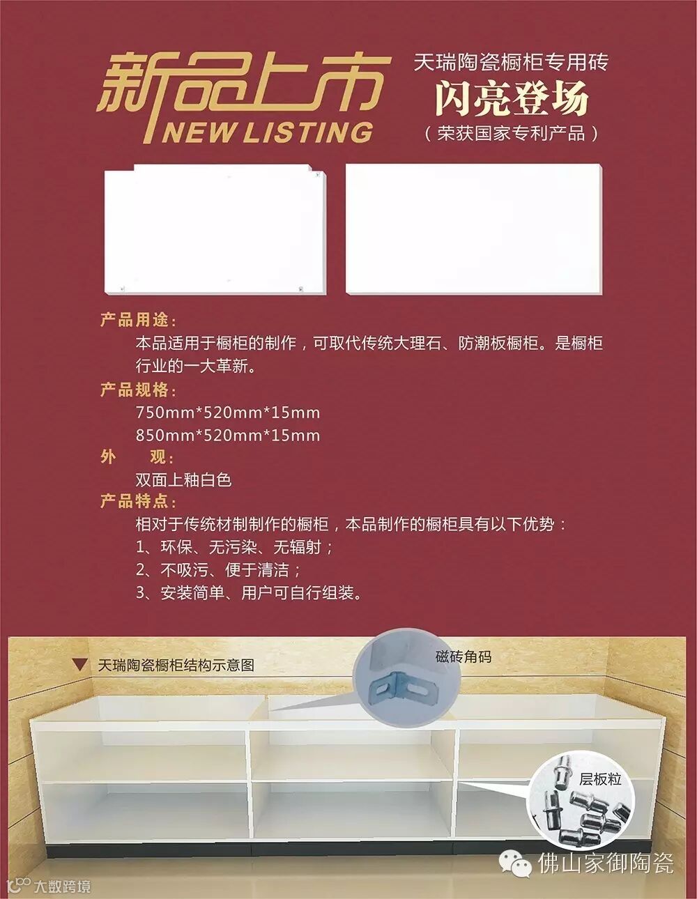 天瑞橱柜瓷砖是一款拥有完全自主知识产权的国家专利产品,在坚固不变形、防水、防霉、环保无辐射、易清洁等方面优于其它同类产品,凭借其优越的实用性、美观性、耐用性、环保性等性能必定赢得广大消费者的青睐。
