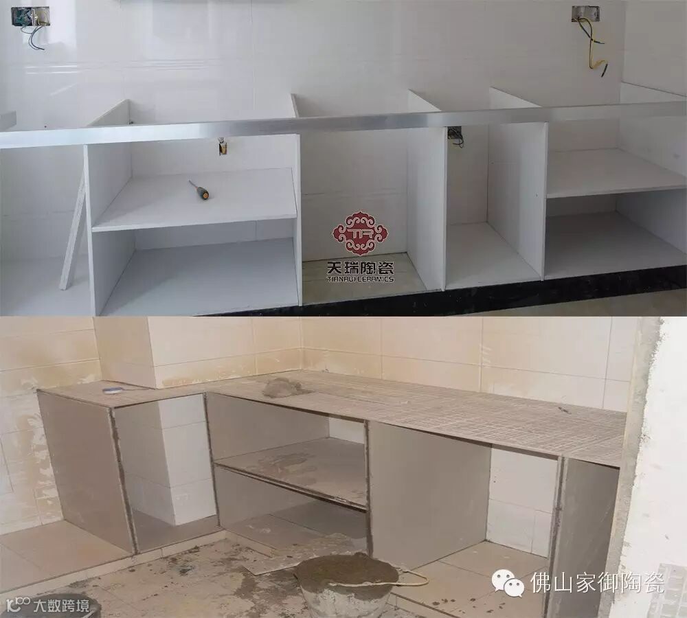 天瑞陶瓷橱柜砖与传统橱柜砖施工方法对比: